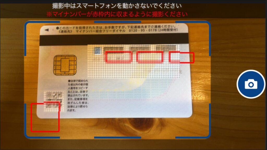 次に、マイナンバーカードを机の上などに置いて撮影します。